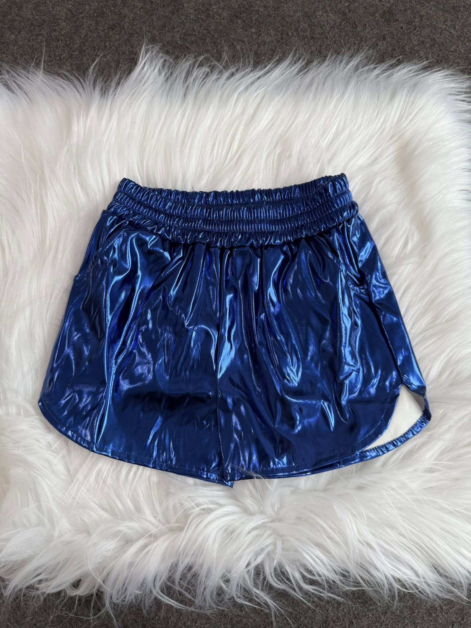 SS0409 Baby Girls Blue Pocket Leather Elastic Bottom Shorts
