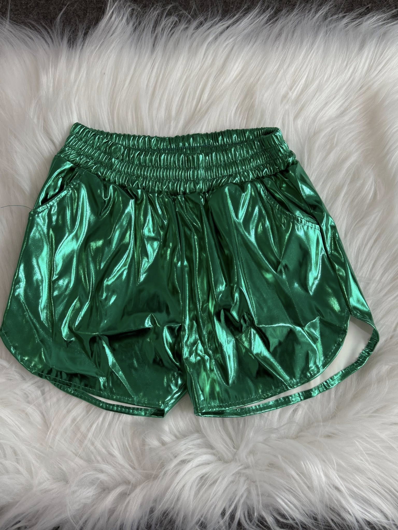 SS0410 Baby Girls Green Pocket Leather Elastic Bottom Shorts