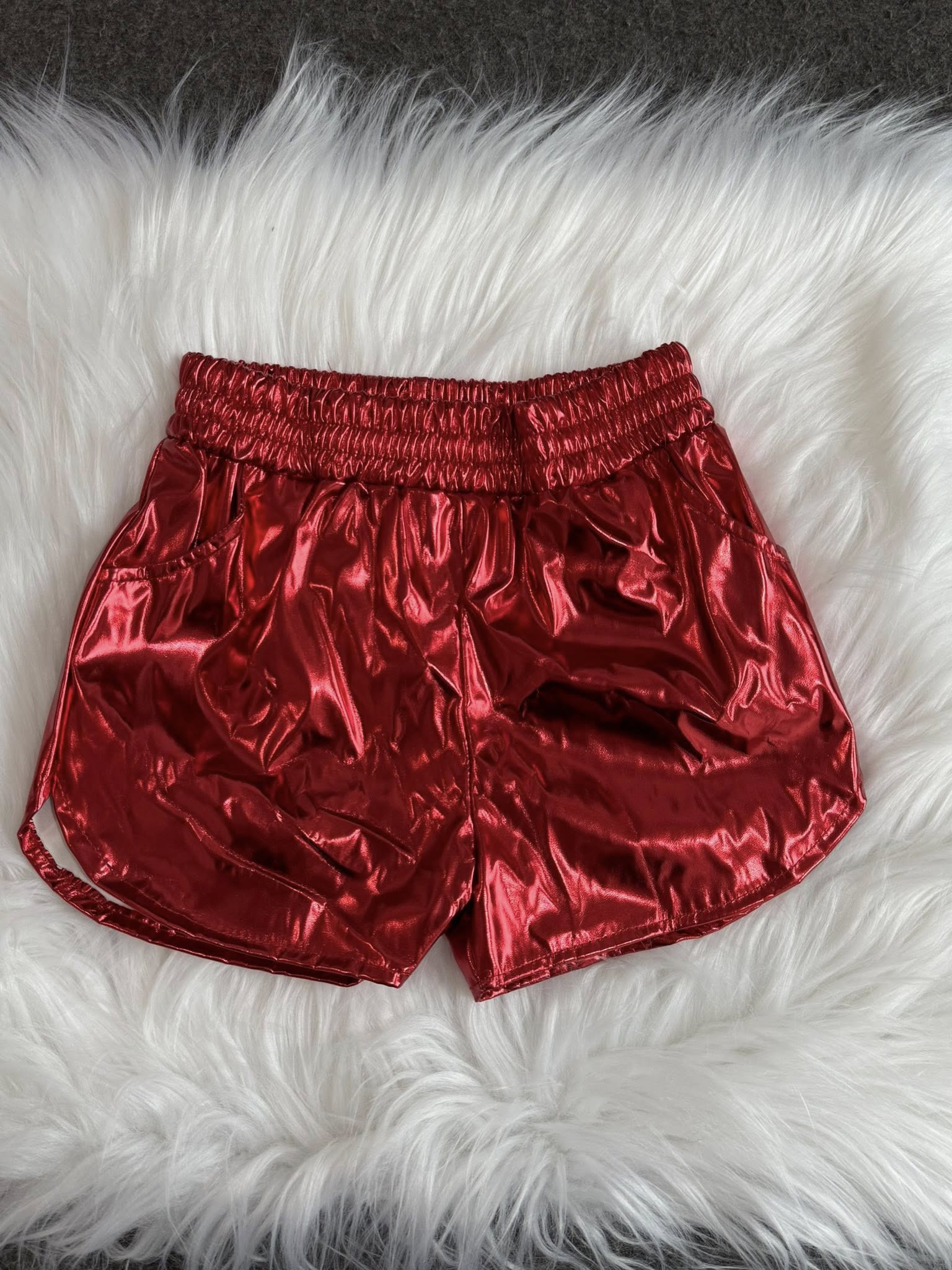 SS0415 Baby Girls Red Pocket Leather Elastic Bottom Shorts