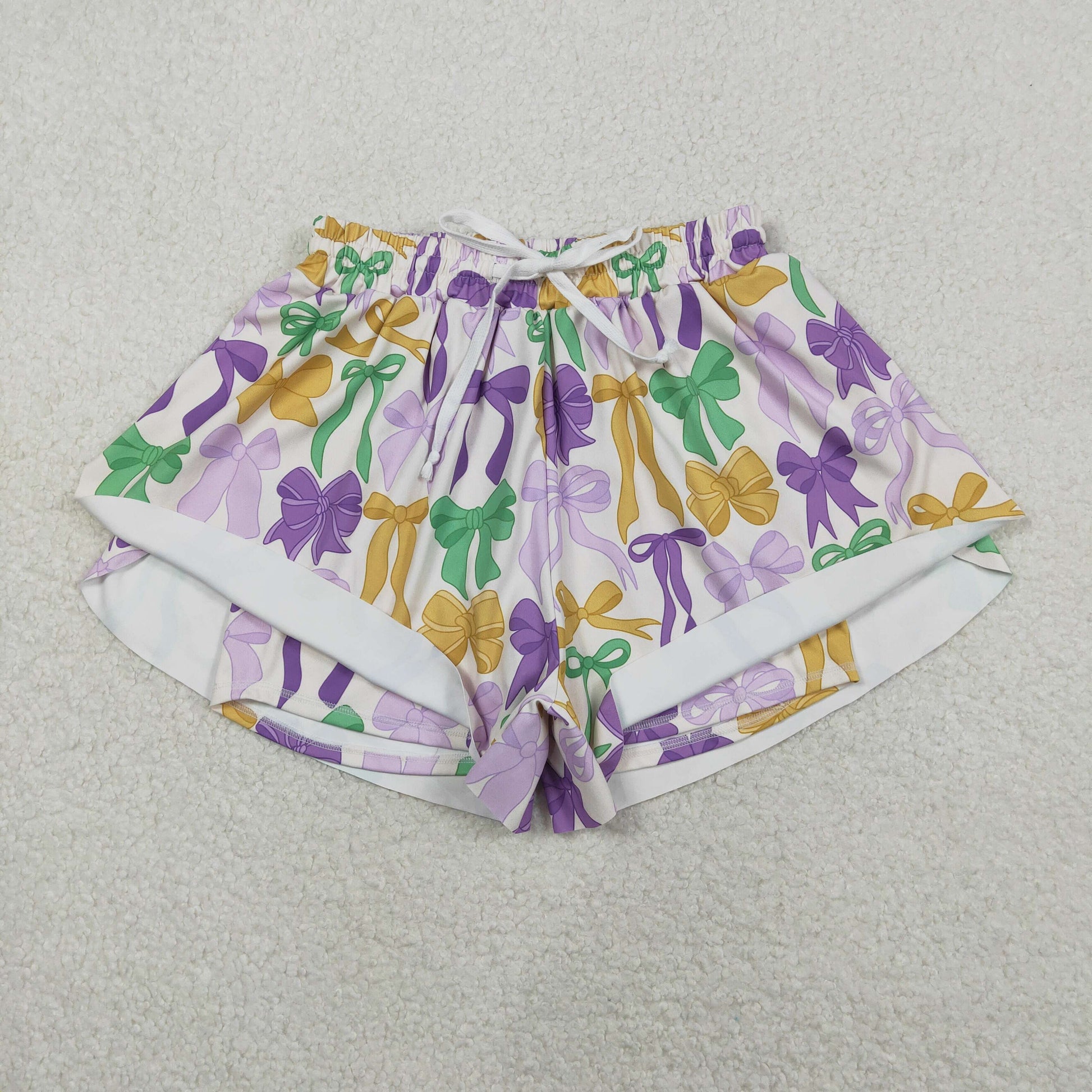 SS0681 Adult Women Mardigras Bows Plaid Yoga Active Ruffle Shorts Bottoms C11.24